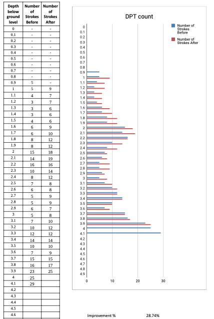 The DCP results across two locations showed ground improvement of 28% – see figure 1.