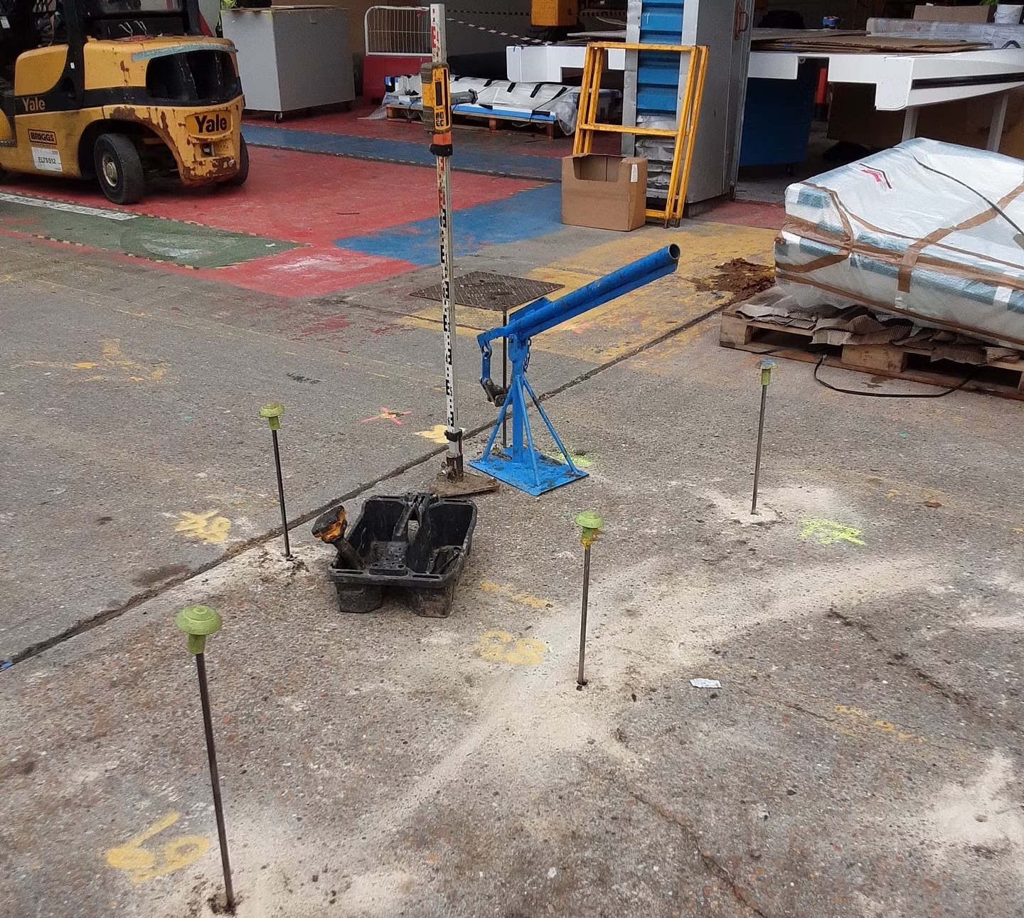 During the delivery phase the slab is monitored for movement. Laser levels recorded movement in increments of 0.5mm and provided visual verification of improvement.